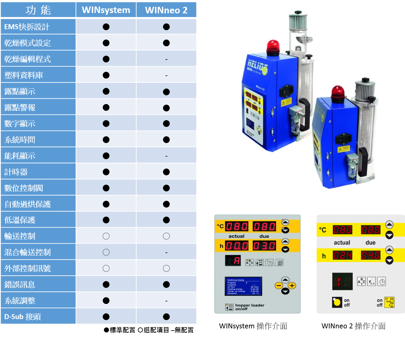 WINsystem 及 WINneo2 控制器功能比較
